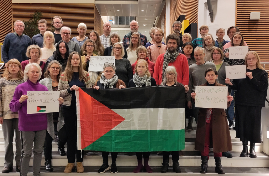 Fri Palestina! Koret støtter Palestinas kamp i krigen på Gaza og har opptrådt på flere markeringer i høst. Krigen på Gaza må stoppes umidddelbart, og humanitær hjelp må komme fram til befolkningen.